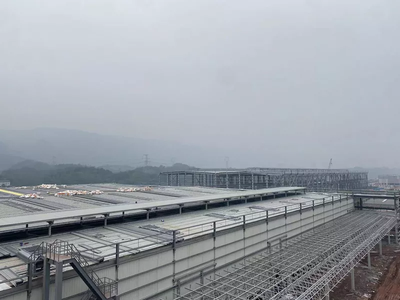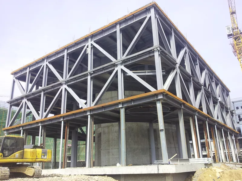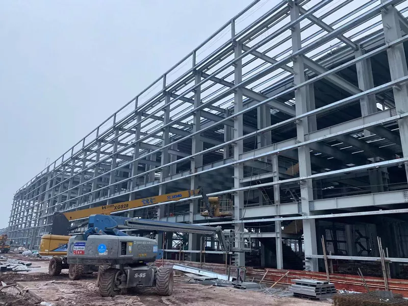 Hovedsakelig sammensatt av stålsøyler, stålbjelker, stålstag, etc., som er samlet i en rammestruktur gjennom sveising, boltede tilkoblinger, etc.