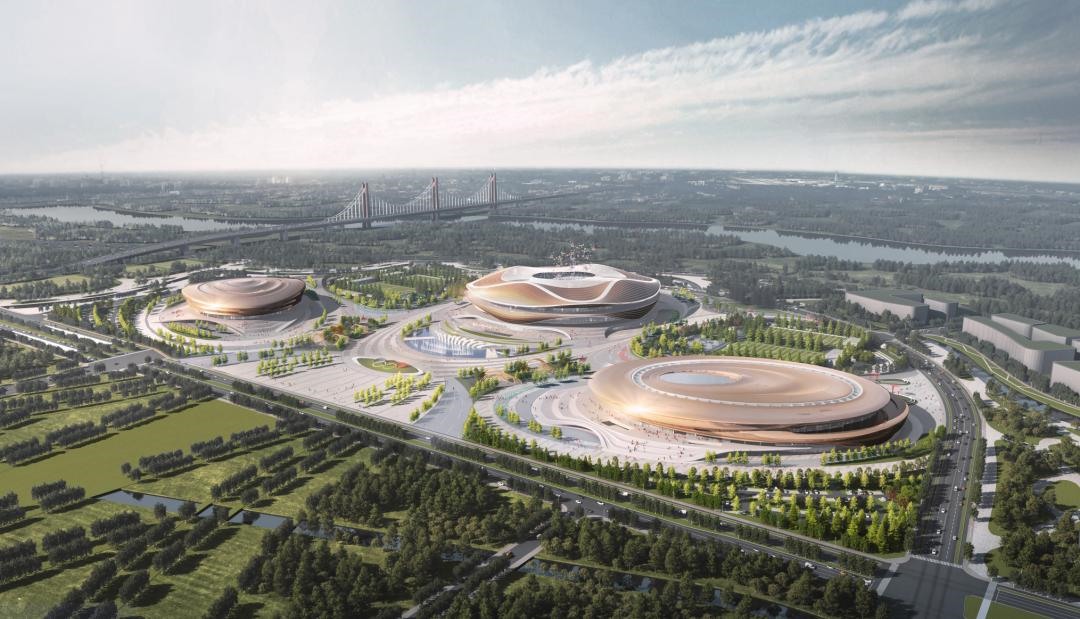 Ligger i Qingdao SCO -demonstrasjonssonen, etterlater det praktfulle SCO Pearl Expo Center et varig inntrykk langs Ruyi -sjøen. Sett ovenfra, har dens sirkulære "enhet" -inspirerte design syv sammenkoblede, skalllignende hvite tak arrangert radialt. De skaper rytmiske, bølgende bølger som stiger elegant mot himmelen.