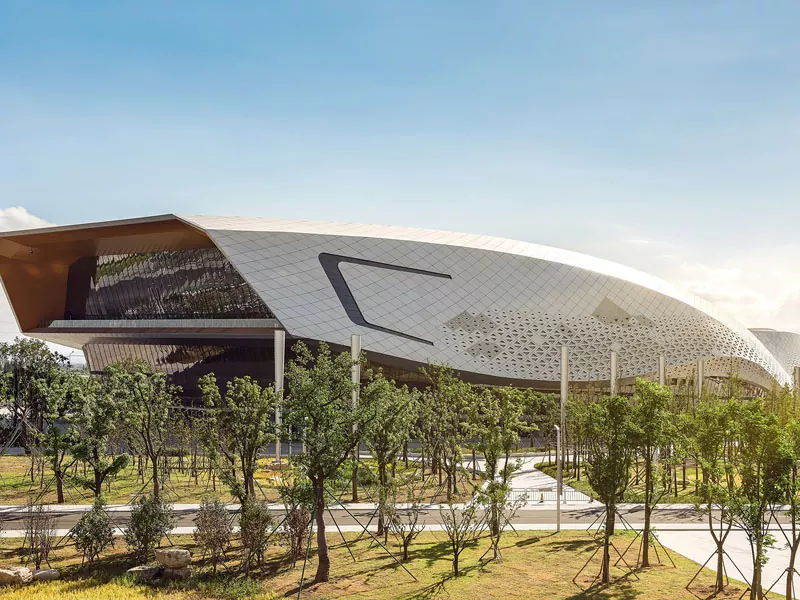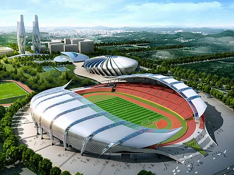 Stort spenn: Det prefabrikkerte stålstrukturen Sports Center-komplekset oppnår multifunksjonelle fleksible rom gjennom en stor spenn-kolonnefri design.